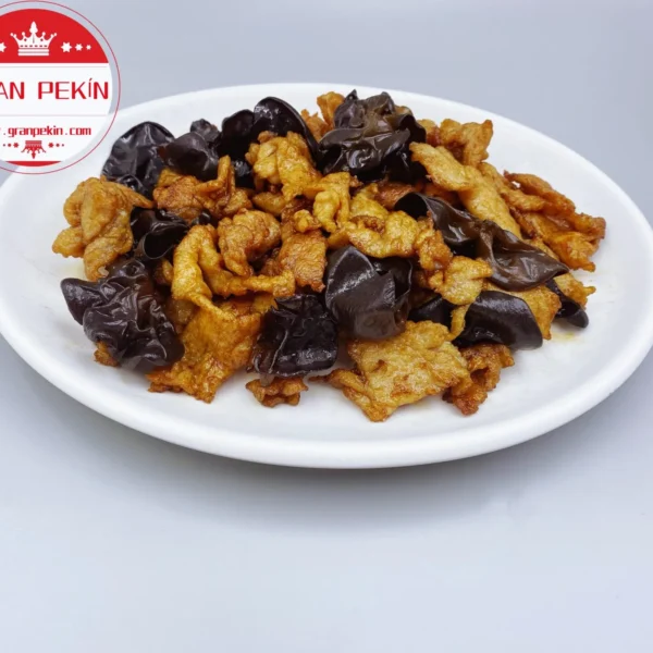 Solomillo de cerdo con champiñones a la salsa de soja.