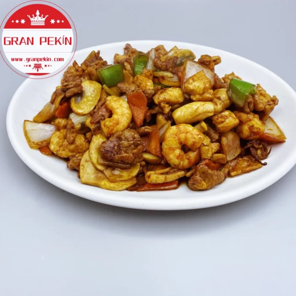 Pollo con champiñones y salsa de soja.